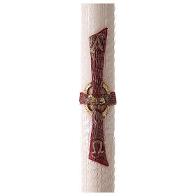 Świeca paschalna z dekoracją alfa i omega, krzyż z czerwonego i złotego wosku, 8X120 cm