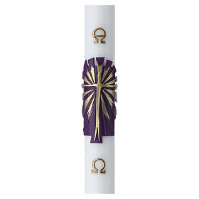 Świeca wielkanocna nowoczesna, kolor kość słoniowa, dek. krzyż złoty i fioletowy, alfa i omega, 80x8 cm