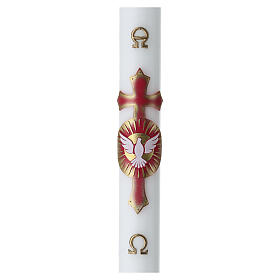 Świeca paschalna 120×8 cm z białego wosku, z motywem Ducha Świętego
